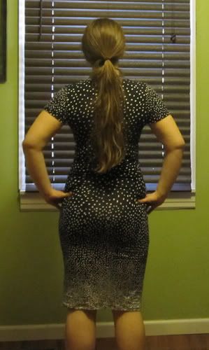 I make a genuine effort to appreciate myself for who I am, but by nature, I do like to keep everything reasonably concealed and modest (I generally go by the top or bottom rule-- low cut top = full coverage pants or longer skirt. Tight or short bottoms = looser and/ or high cut top)-- so I'm a little uncomfortable in this dress. My fiance, on the other hand, thinks this dress is amazing. Judge for yourself.